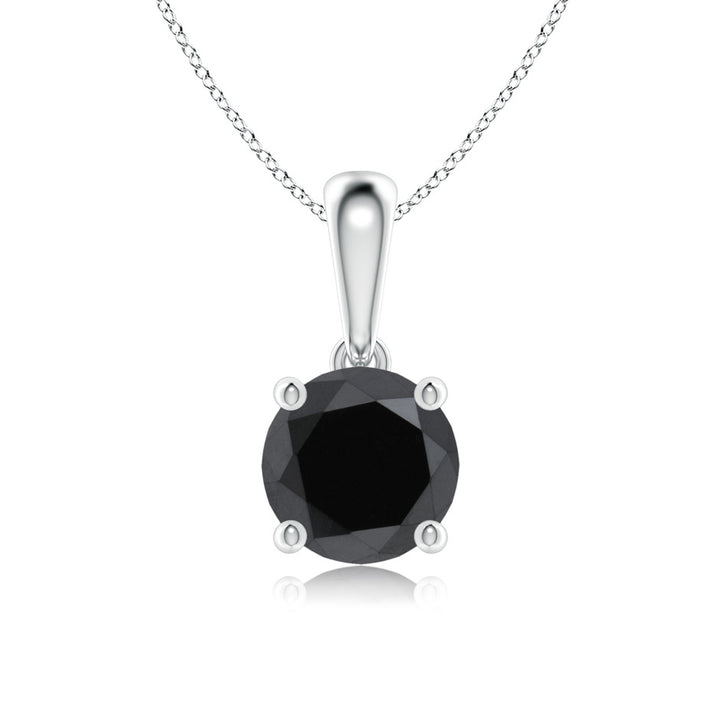 This Classic Prong-Set Round Enhanced Black Diamond Solitaire Pendant by Angara offers bold sophistication with a touch of modern edge. The round enhanced black diamond shines intensely from its classic prong setting, hanging elegantly from a lustrous bale. Crafted in 14k white gold, this pendant is ideal for those seeking unique, statement-making jewelry with refined craftsmanship.