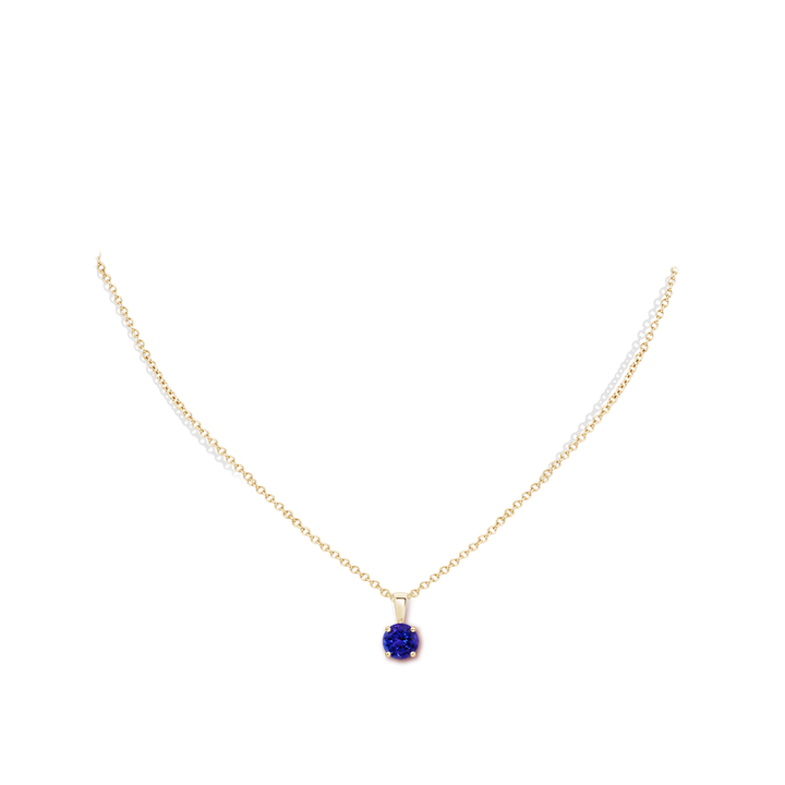 This Classic Prong-Set Round Tanzanite Solitaire Pendant by Angara centers on a mesmerizing violet-blue tanzanite secured in a four-prong setting, suspended from a polished 14k yellow gold bale. This elegant and timeless piece draws all attention to the brilliance of the center stone, perfect for everyday wear or special moments.