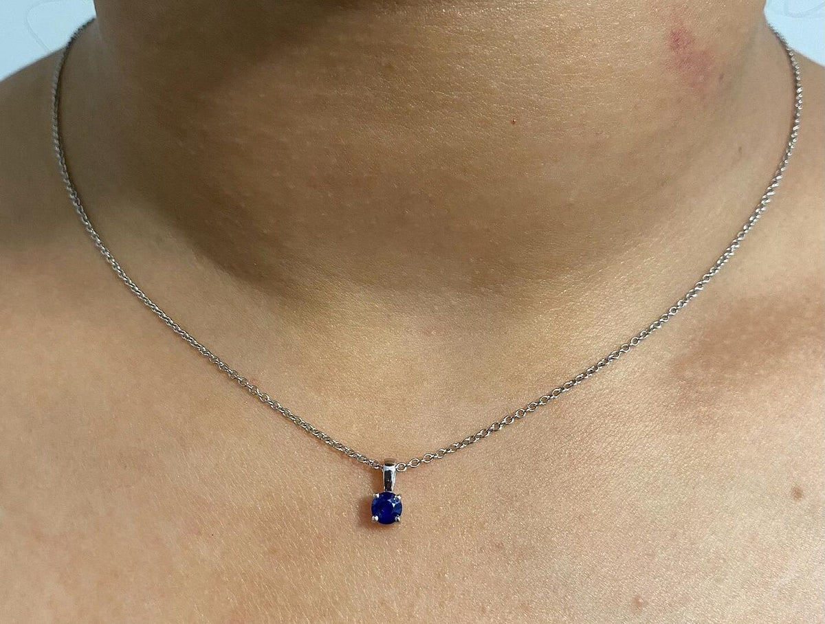 Classic Prong-Set Round Blue Sapphire Solitaire Pendant