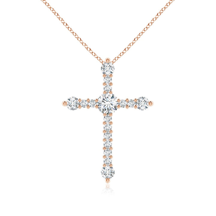 This Lab-Grown Prong-Set Diamond Budded Cross Pendant by Angara is a radiant symbol of faith. Crafted in 14k rose gold, the cross is embellished with prong-set lab-grown diamonds, delivering brilliant sparkle and refined elegance.