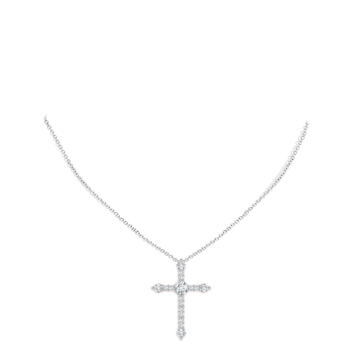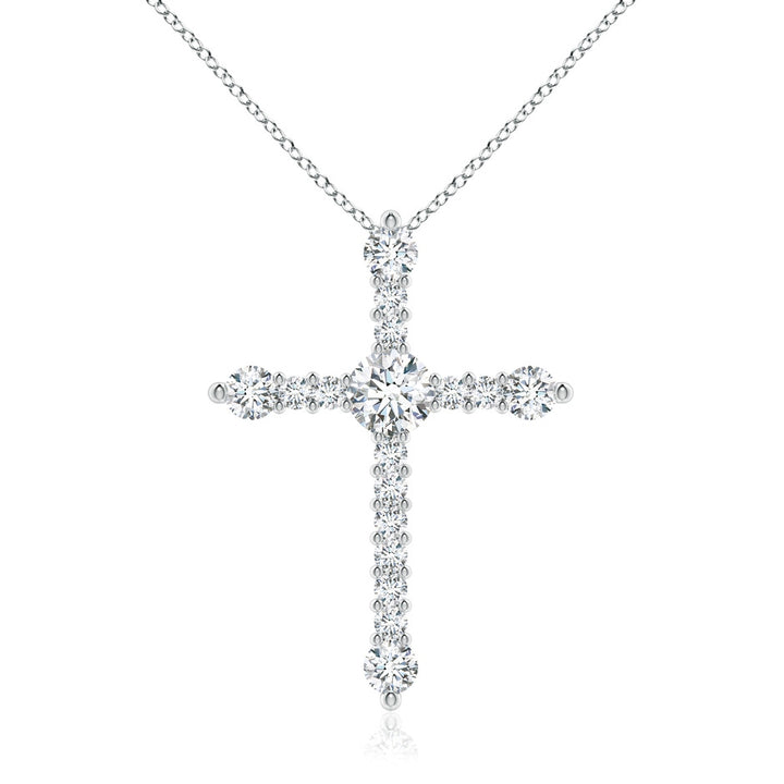 This Lab-Grown Prong-Set Diamond Budded Cross Pendant by Angara serves as a radiant symbol of faith and elegance. Set in 14k white gold, the pendant dazzles with prong-set lab-grown diamonds that catch the light beautifully, embodying purity and spiritual strength. Its delicate design adds a modern touch to a timeless motif, perfect for everyday wear or special occasions. The pendant's refined craftsmanship makes it a meaningful gift or personal treasure.