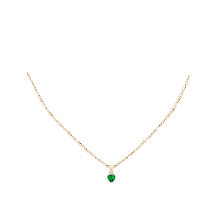 This Heart-Shaped Emerald Rabbit Ear Bale Pendant by Angara symbolizes love with its lush AAAA-quality heart-shaped emerald accented by a sparkling round diamond atop a rabbit ear bale. Crafted in 14k yellow gold, it is a refined and meaningful pendant perfect for cherished moments.