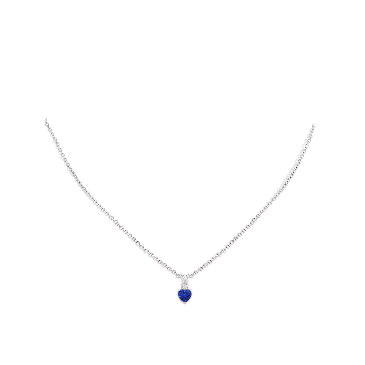 This Heart-Shaped Sapphire Rabbit Ear Bale Pendant by Angara is a stunning symbol of love, featuring a heated AAA heart-shaped blue sapphire accented by a single sparkling round diamond. The pendant hangs gracefully from a delicate rabbit ear bale in 14k white gold.