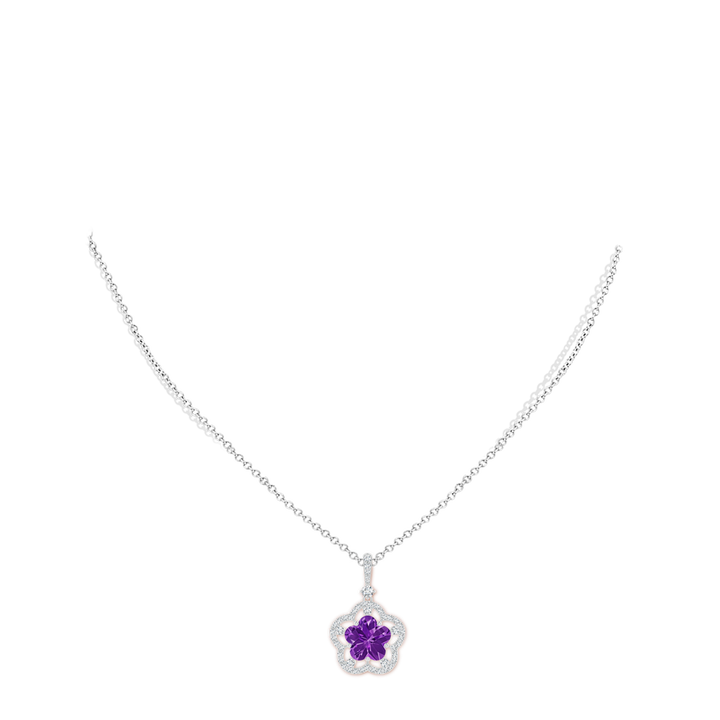 Five-Petal Flower Amethyst and Diamond Halo Pendant