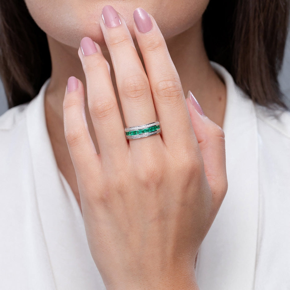 Channel-Set Square Emerald and Diamond Half Eternity Band