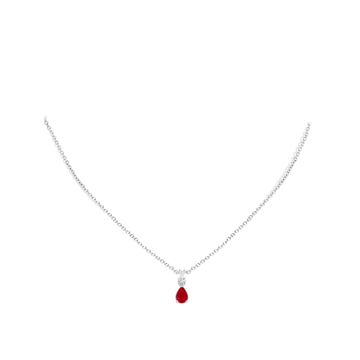 Crafted in 14k white gold. Includes 1 pear ruby (7x5mm, 0.80 ct total, AAA grade, heated, prong-set) and 1 round diamond (0.10 ct total, H SI2 quality, prong-set).