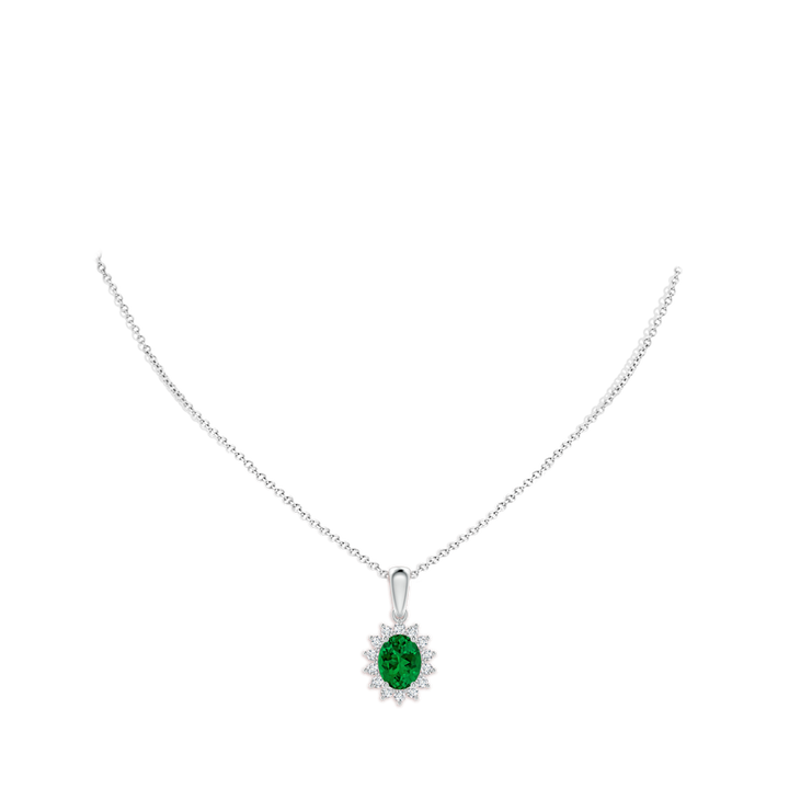 Lab-Grown Oval Emerald Pendant with Floral Halo