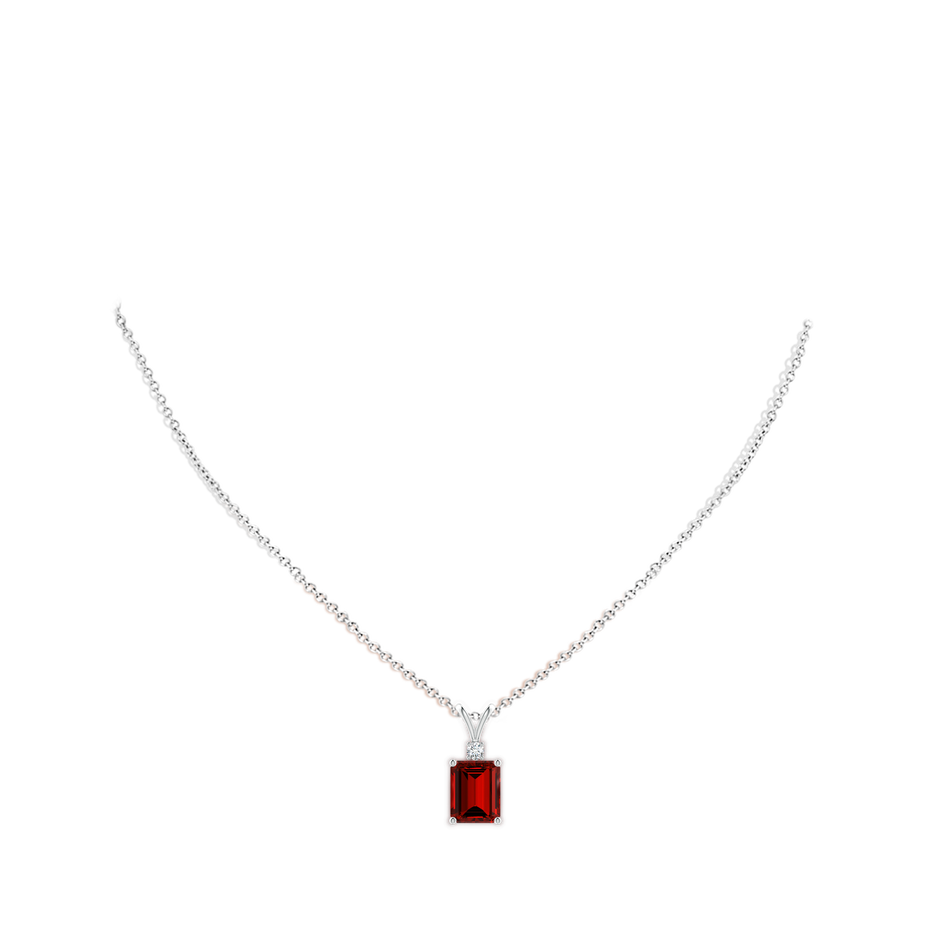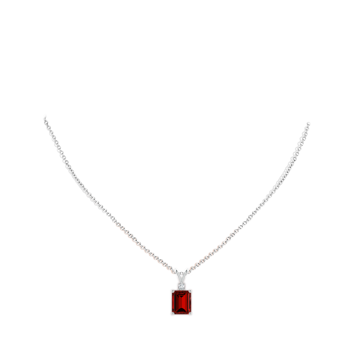 This Emerald-Cut Lab-Grown Ruby Solitaire Pendant with Diamond by Angara is a sophisticated statement piece that evokes the brilliance of the sky. The bold 4.00 ct lab-grown emerald-cut ruby commands attention in a prong setting, accompanied by a sparkling round lab-grown diamond accent. Suspended from a sleek V-bale crafted in 14k white gold, this pendant blends modern elegance with symbolic depth, perfect for a meaningful gift or personal indulgence.