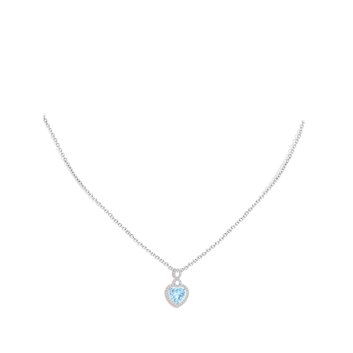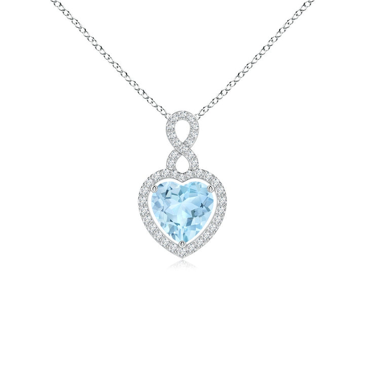 Aquamarine Infinity Heart Pendant with Diamond Halo