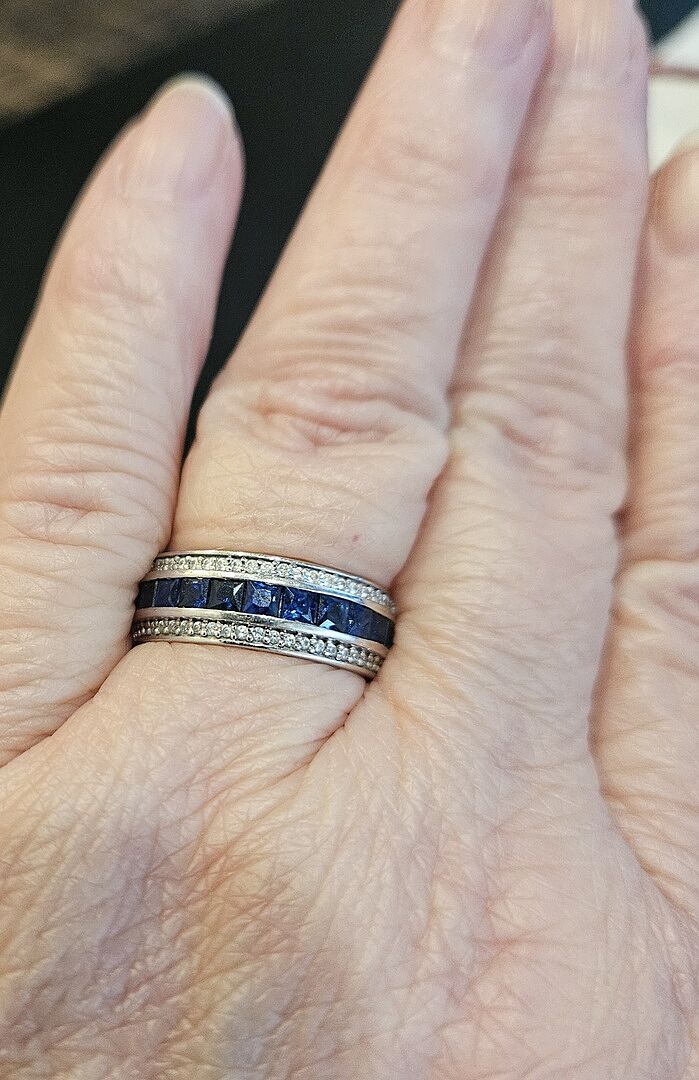 Channel-Set Square Sapphire and Diamond Half Eternity Band