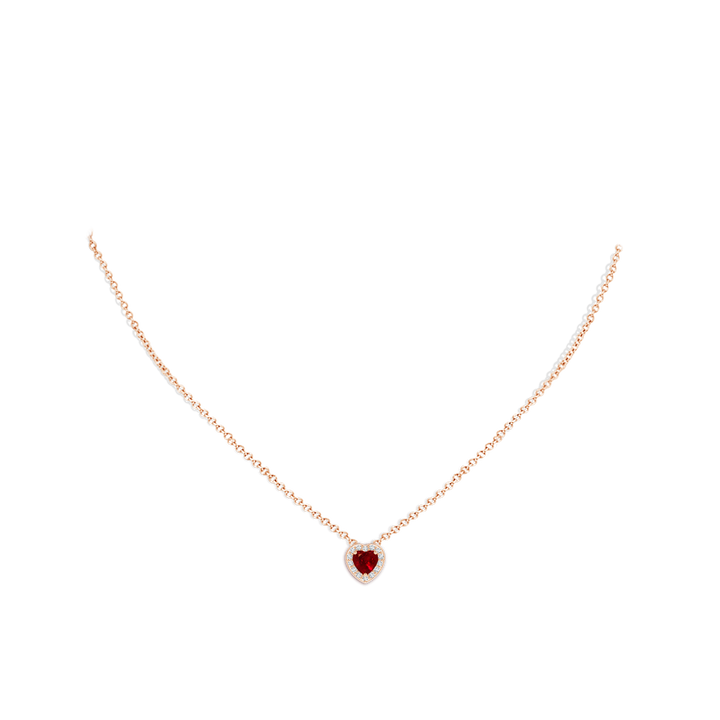 Heart-Shaped Ruby Pendant with Diamond Halo