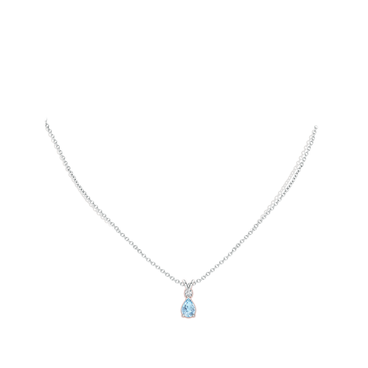 This Aquamarine Teardrop Pendant with Diamond by Angara evokes serene elegance with its soft pastel blue gemstone, perfectly pear-shaped and prong-set. A single radiant diamond crowns the aquamarine, adding subtle sparkle and refined contrast. The polished 14k white gold V-bale completes the classic silhouette, making this pendant an ideal expression of calm sophistication and timeless beauty.