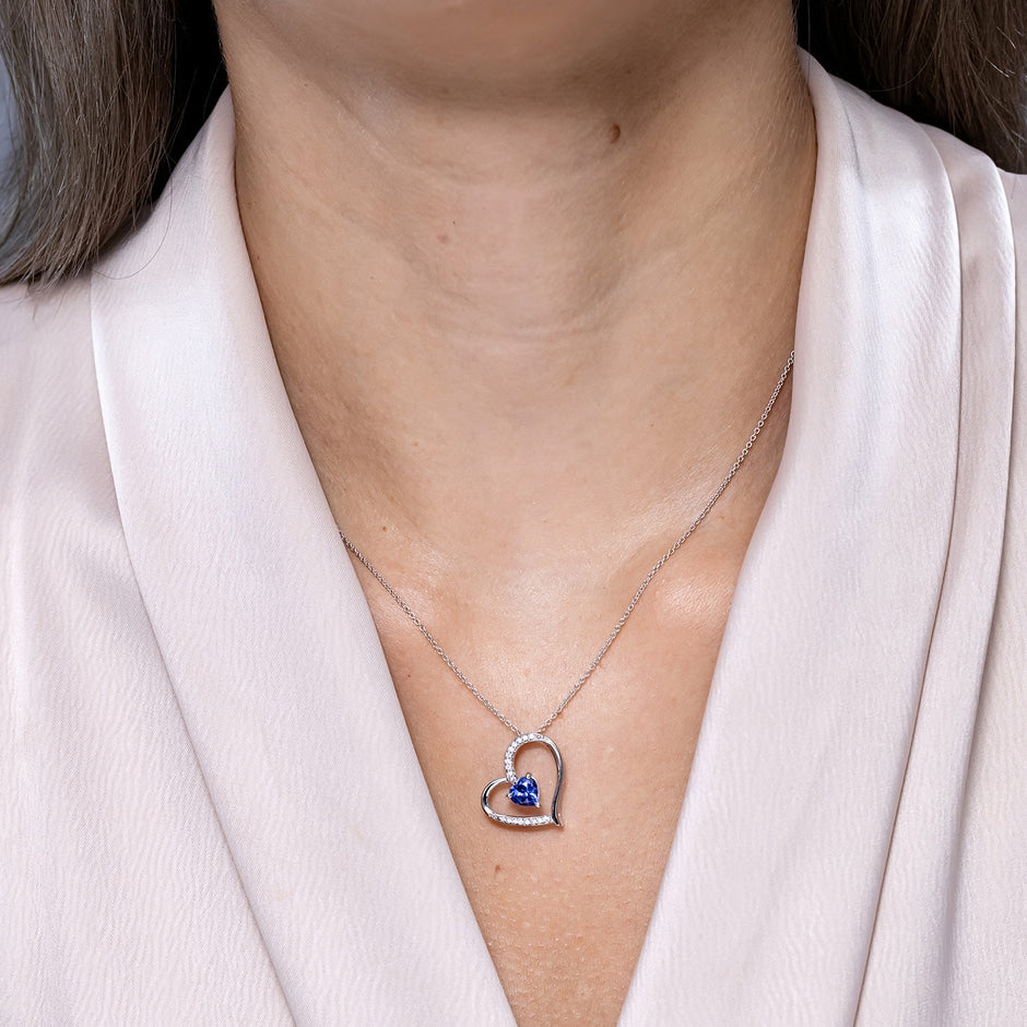 Tanzanite and Diamond Tilted Heart Pendant