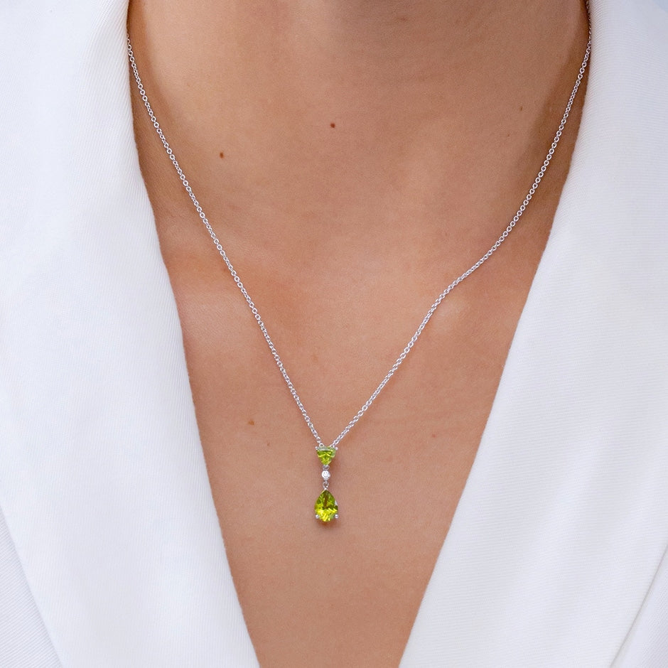 Trillion and Pear Peridot Drop Pendant with Diamond