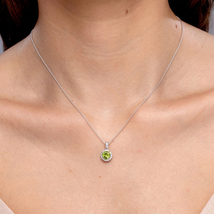 Claw-Set Round Peridot Pendant with Diamond Halo