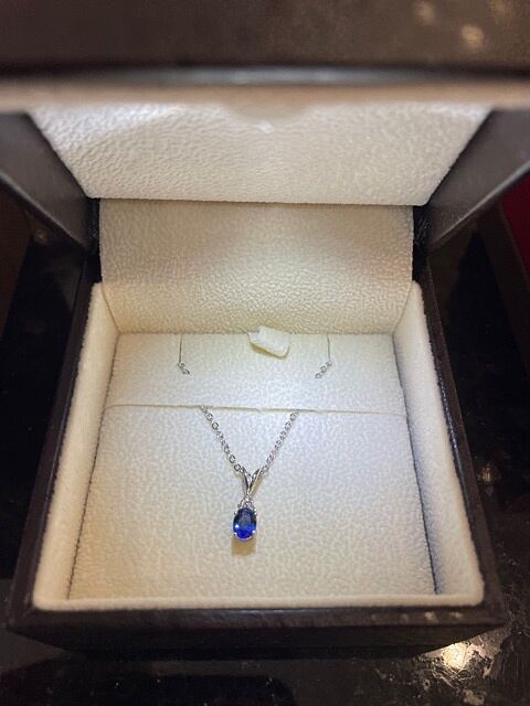 Oval Sapphire Solitaire Pendant with Trio Diamond