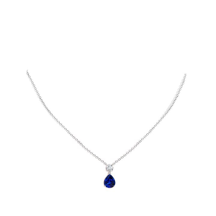 Lab-Grown Solitaire Pear Blue Sapphire Drop Pendant with Lab Diamond Accent