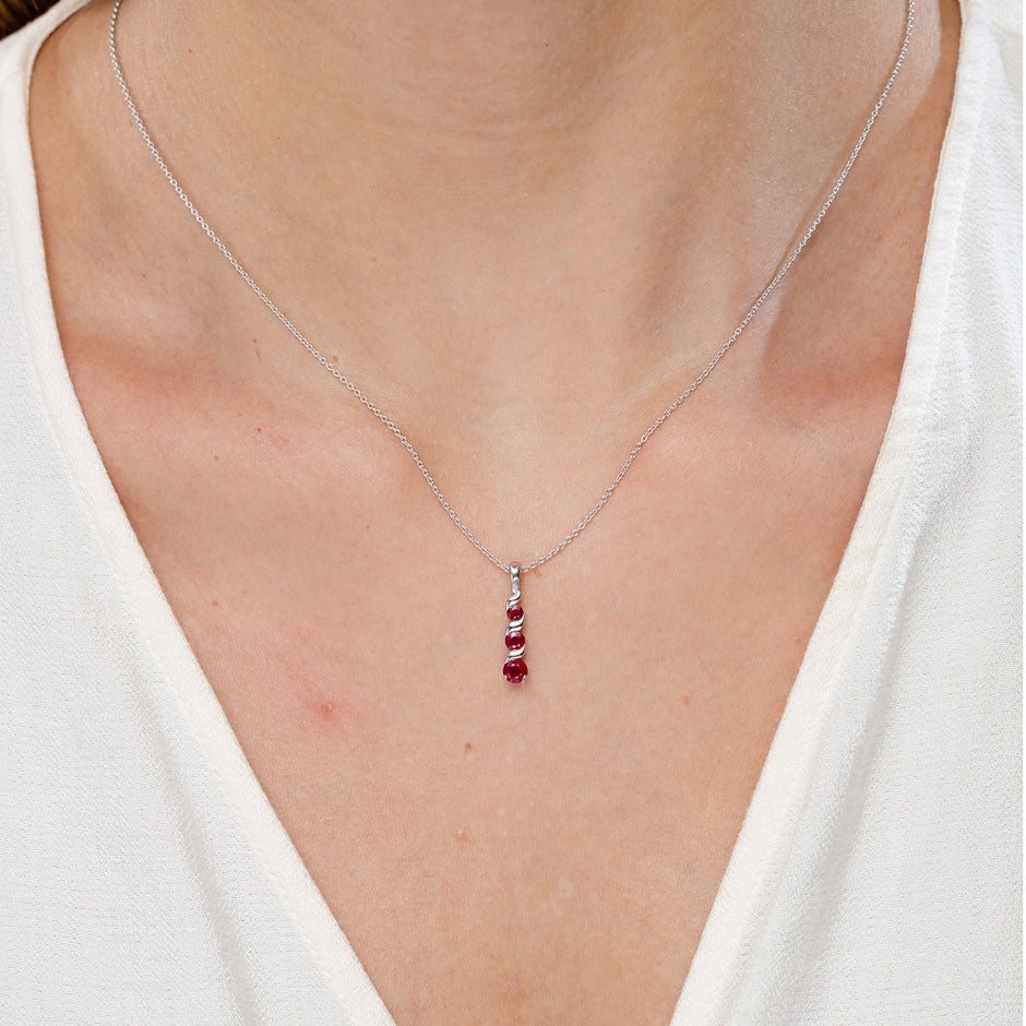Channel-Set Round Ruby Three Stone Journey Pendant