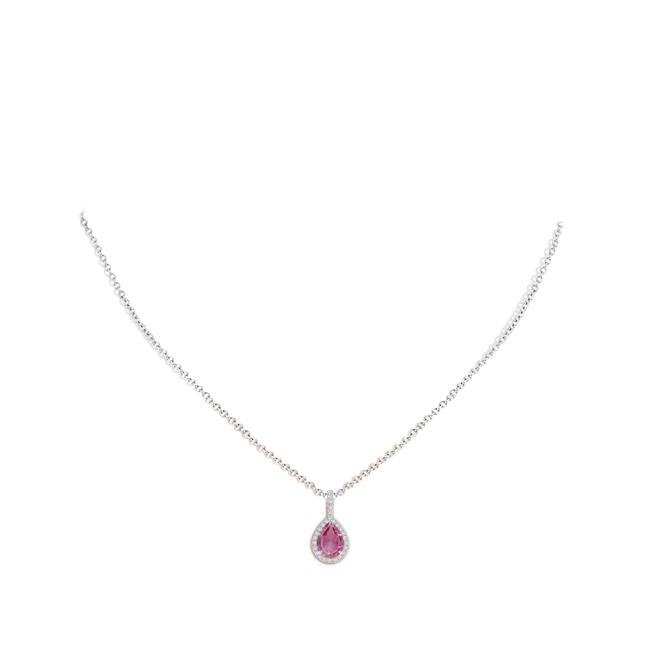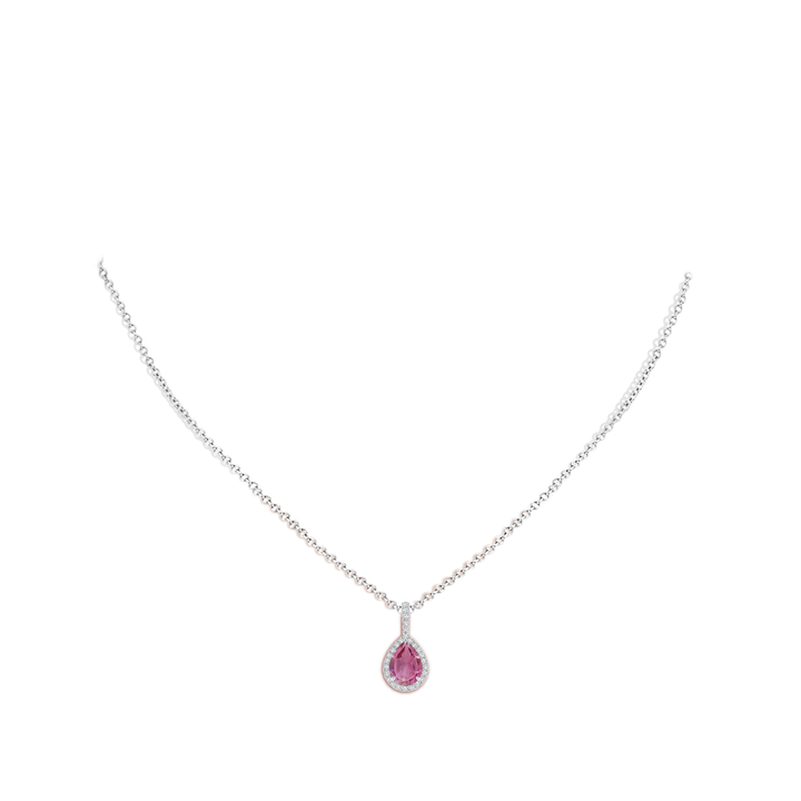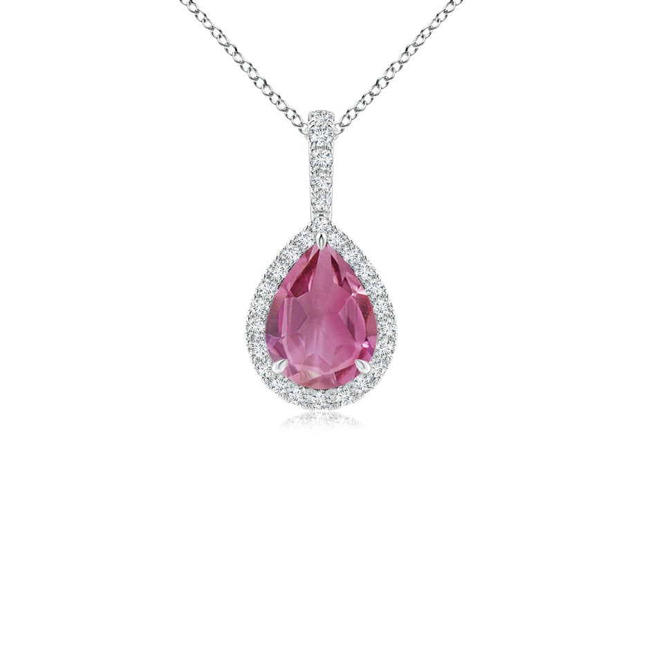 Pink Tourmaline Teardrop Pendant with Diamond Halo
