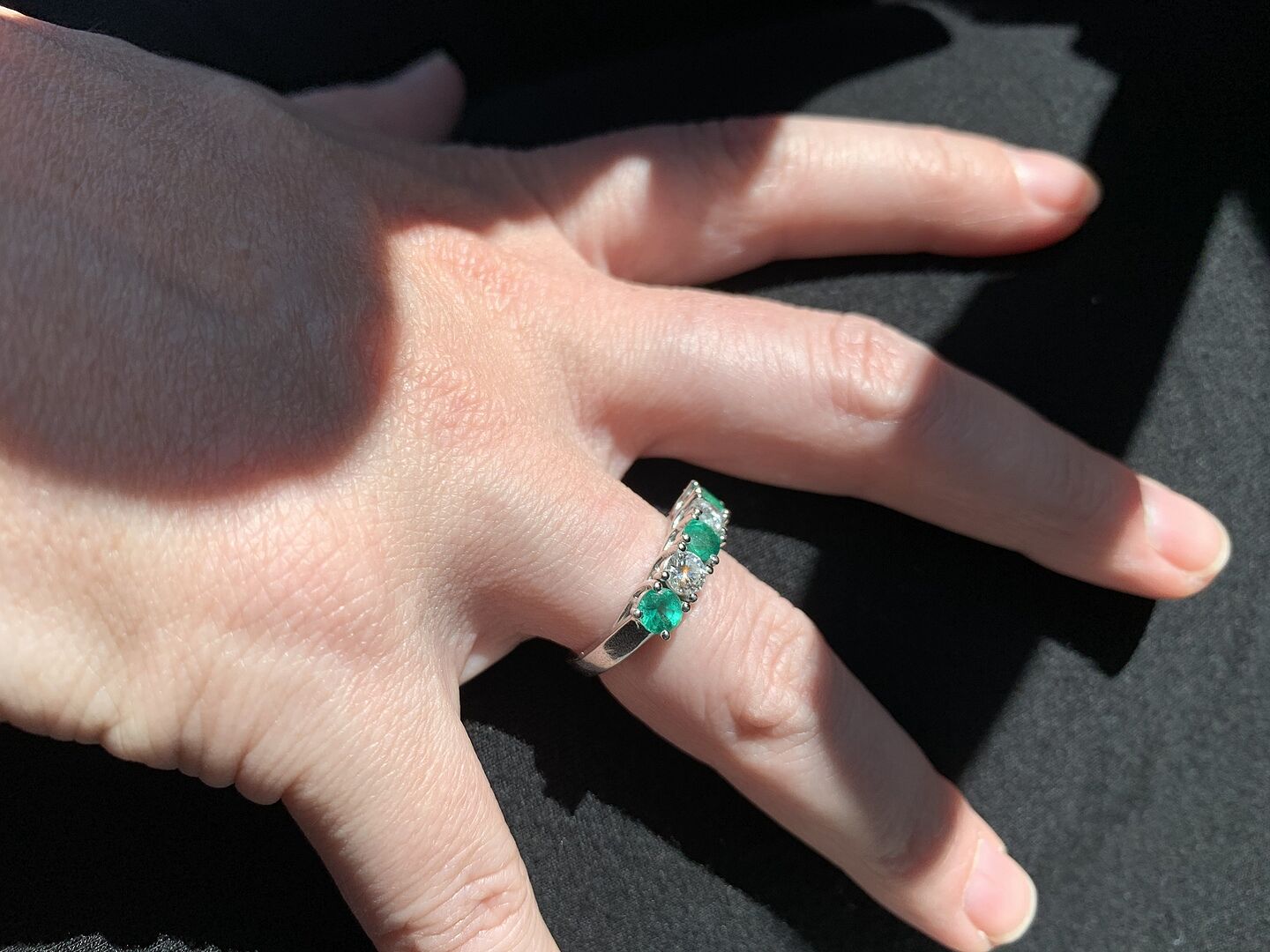 Half Eternity 5 Stone Emerald and Diamond Wedding Band