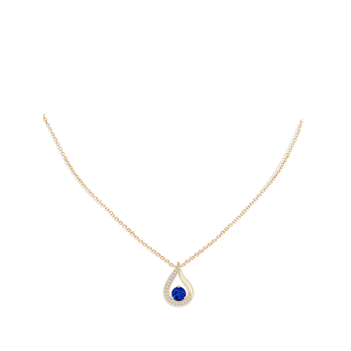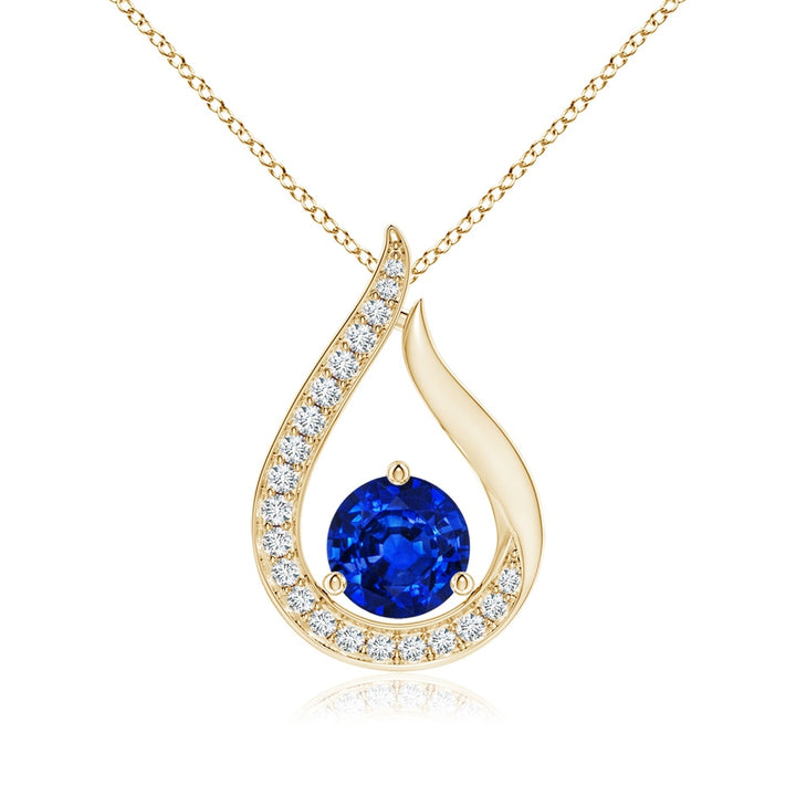This Lab-Grown Floating Blue Sapphire Tulip Pendant with Lab Diamonds by Angara celebrates nature and innovation. Crafted in 14k yellow gold, the pendant features a 6mm lab-grown round blue sapphire seemingly suspended within a delicate tulip-shaped frame. The frame is partially embellished with 21 F-G VS lab-grown diamonds in a pavé setting, lending subtle sparkle and modern luxury. This pendant embodies purity, growth, and forward-thinking elegance—perfect for those who cherish floral beauty with a sustainable edge.