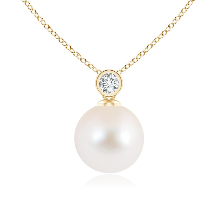 This Freshwater Pearl Pendant with Bezel Diamond by Angara embodies refined simplicity and quiet luxury. A luminous 9mm round freshwater cultured pearl is complemented by a single bezel-set solitaire diamond that adds a subtle sparkle without overpowering the pearl’s natural beauty. The 14k yellow gold setting enhances the pendant’s warm glow. This piece speaks to those who value understated elegance and classic silhouettes, perfect for daily wear or layering with other delicate necklaces.