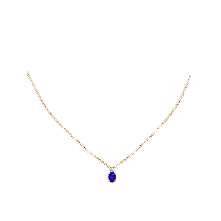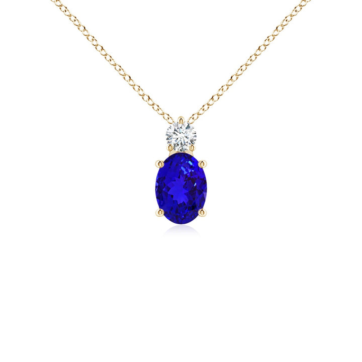 This Oval Tanzanite Solitaire Pendant with Diamond by Angara radiates classic beauty and refined elegance. A richly hued oval tanzanite is topped by a sparkling round diamond, both set in prongs, while intricate side detailing in 14k rose gold adds a unique craftsmanship touch. This pendant symbolizes transformation and vitality with its vibrant color and delicate sparkle. Ideal as a meaningful gift or personal heirloom, it lends a luxurious yet wearable charm to any jewelry collection.