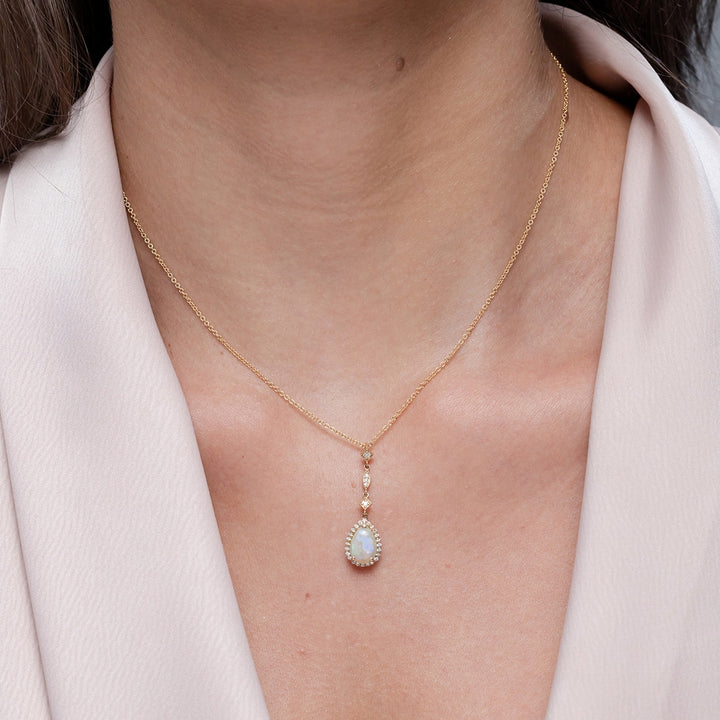 Prong-Set Opal Teardrop Halo Pendant with Diamond Accents