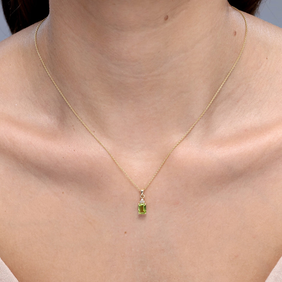 Emerald-Cut Peridot Pendant with Diamond Trio