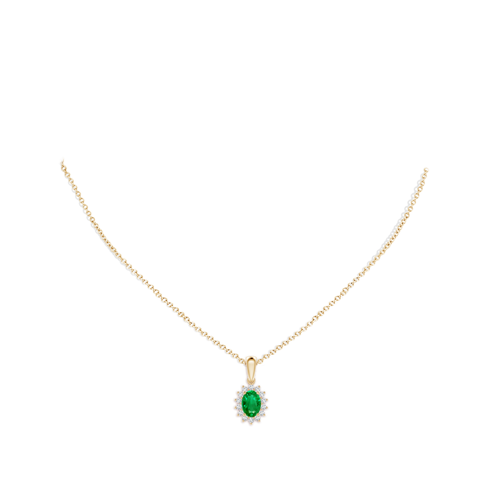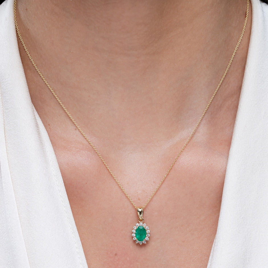 Oval Emerald Pendant with Floral Diamond Halo
