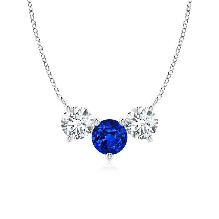 Classic Trio Round Lab-Grown Blue Sapphire and Diamond Necklace
