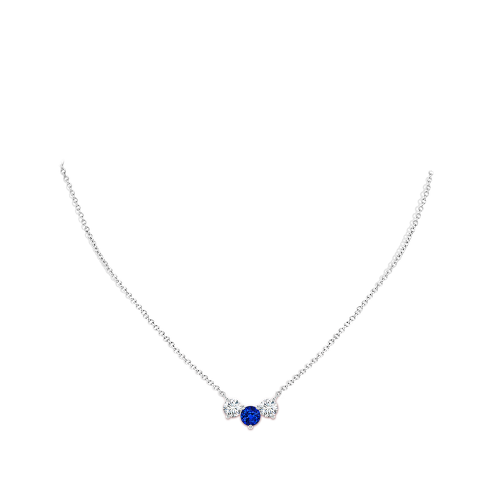 This Classic Trio Round Lab-Grown Blue Sapphire and Diamond Necklace by Angara symbolizes the journey of love through past, present, and future. Centered by a vibrant round lab-grown blue sapphire, flanked by two lab-grown diamonds, the trio appears to float effortlessly along an 18k white gold chain. Its minimalist yet meaningful design is crafted for everyday elegance and versatile styling, conveying purity, commitment, and hope with sustainable brilliance.