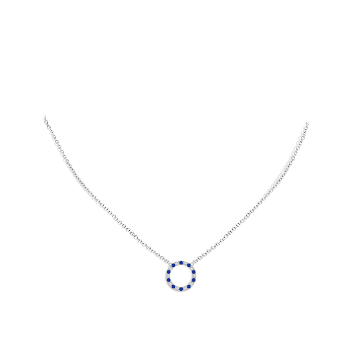 This Sapphire and Diamond Open Circle Eternity Pendant by Angara radiates timeless simplicity and refined elegance. The open circle design is delicately studded with alternating round blue sapphires and diamonds, creating a harmonious dance of deep blue and brilliant white that appears to float effortlessly on the chain. Crafted in luminous 18k white gold, this pendant symbolizes eternal love and unity, making it a versatile piece for everyday sophistication or special occasions.