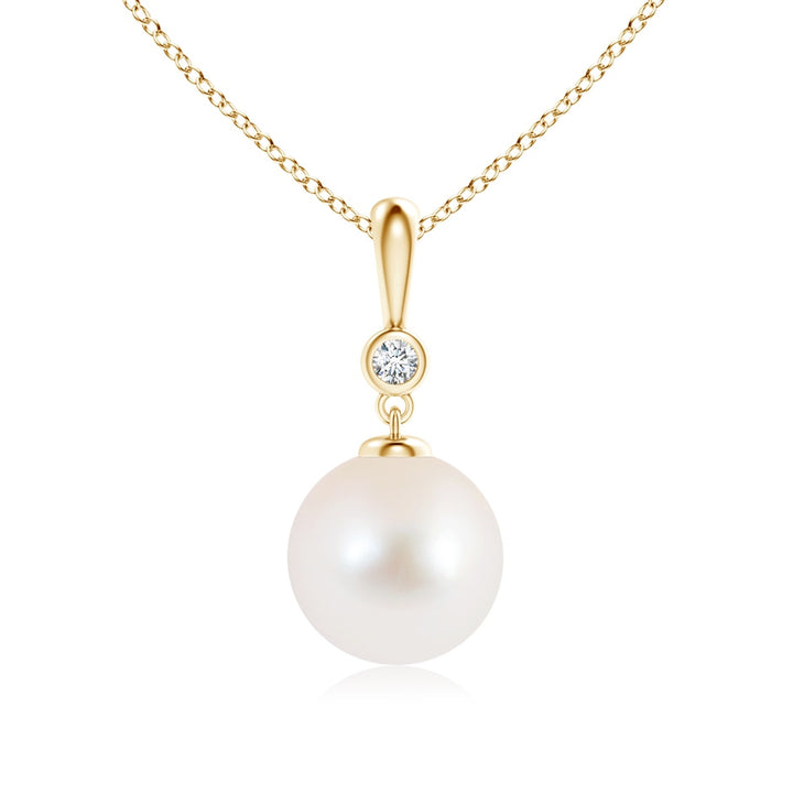 This Classic Freshwater Pearl Drop Pendant with Diamond by Angara is a timeless expression of elegance and femininity. A luminous 9mm AAA-quality freshwater cultured pearl is suspended gracefully from a single bale, anchored by a sparkling bezel-set diamond station. Crafted in warm 14k rose gold, this pendant balances delicate simplicity with subtle brilliance, making it a versatile accessory for both casual and formal wear. The piece evokes purity and grace, perfect for the modern woman’s jewelry collection.