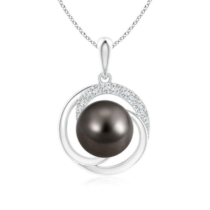 This Tahitian Pearl Swirl Pendant with Diamonds by Angara exudes a contemporary elegance through its overlapping swirl frame that cradles a lustrous 9mm AAA-grade Tahitian cultured pearl. The pendant's design symbolizes the graceful flow of nature, with prong-set diamonds partially adorning the swirl to enhance its captivating shimmer. Crafted in 18k white gold, this pendant blends exotic allure with refined craftsmanship, making it a stunning statement piece that radiates mystery and sophistication.