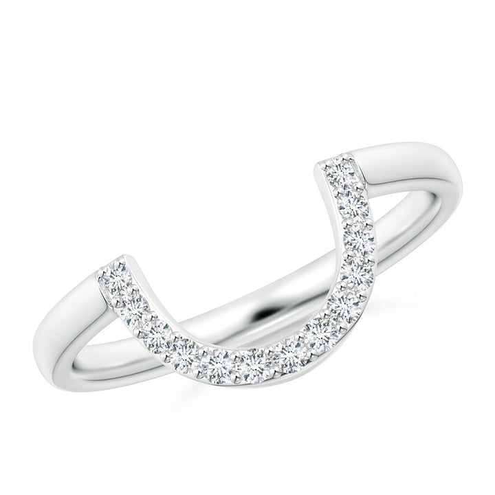 This Lab-Grown Diamond U-Shaped Wedding Ring by Angara offers a refined silhouette with a soft curve that complements engagement rings beautifully. Thirteen round lab-grown diamonds line the U-shaped arc in a graceful prong setting, providing just the right amount of sparkle to signify a lasting promise.