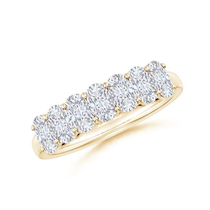 This Lab-Grown Prong-Set Cushion Rectangular Diamond Seven Stone Wedding Ring by Angara is a bold expression of everlasting love. Seven cushion-rectangular lab-grown diamonds are prong-set in a seamless row, creating a radiant band that balances modern design with timeless sparkle.