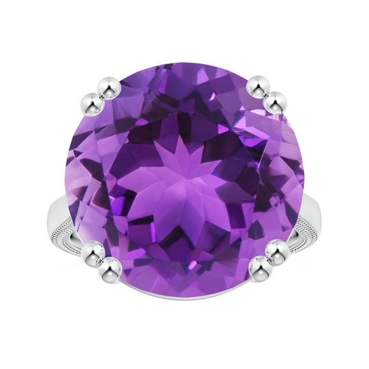 Crafted in 18K white gold with one GIA-certified round amethyst measuring 18x18mm (2.36 carats total). Heated enhancement. AAA quality. Prong setting. Also available in rose gold, yellow gold, and platinum.