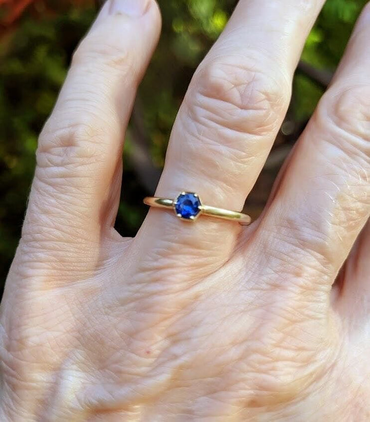 Pavé Set Tsavorite Hexagon Solitaire Ring with Milgrain