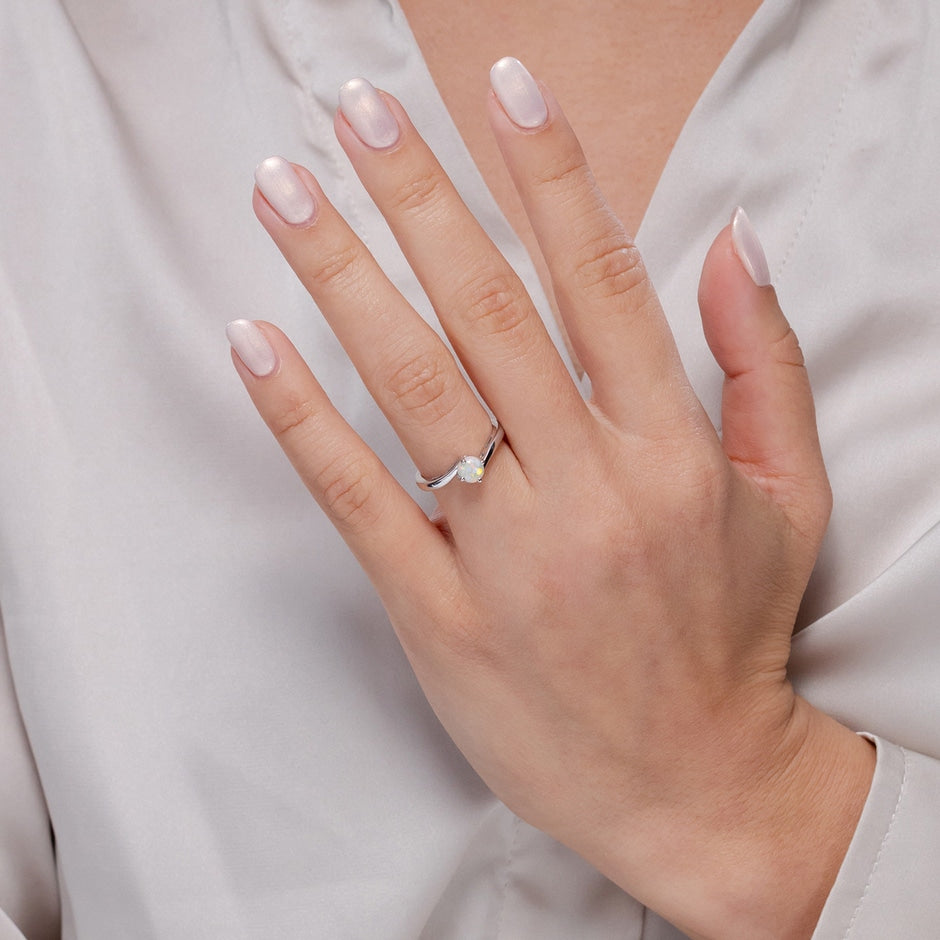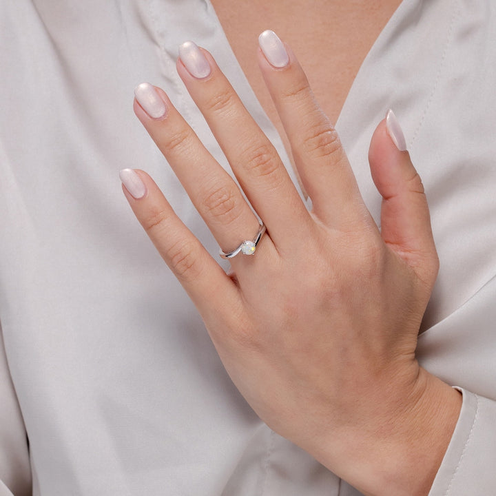 Classic Round Opal Solitaire Bypass Ring