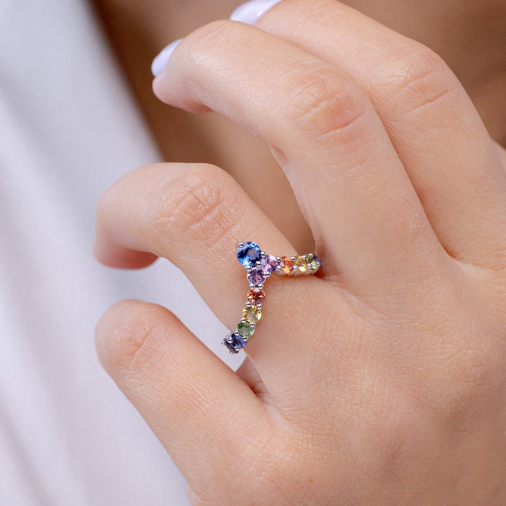 Spectra Prong-Set Round Multi-Sapphire Chevron Ring