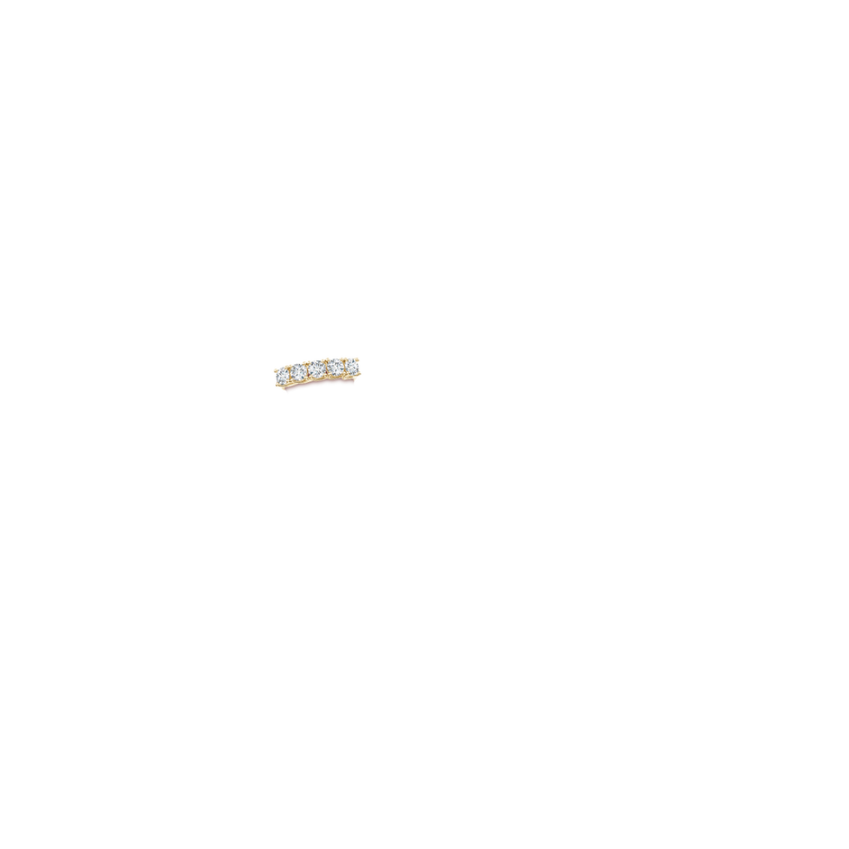 This Lab-Grown Half Eternity Five Stone Diamond Wedding Ring by Angara features five brilliant round lab-grown diamonds arranged in a half eternity style on a polished 14k yellow gold band. The dazzling diamonds and sleek design make this a luxurious, modern choice for those seeking ethical sparkle in a stunning wedding band.