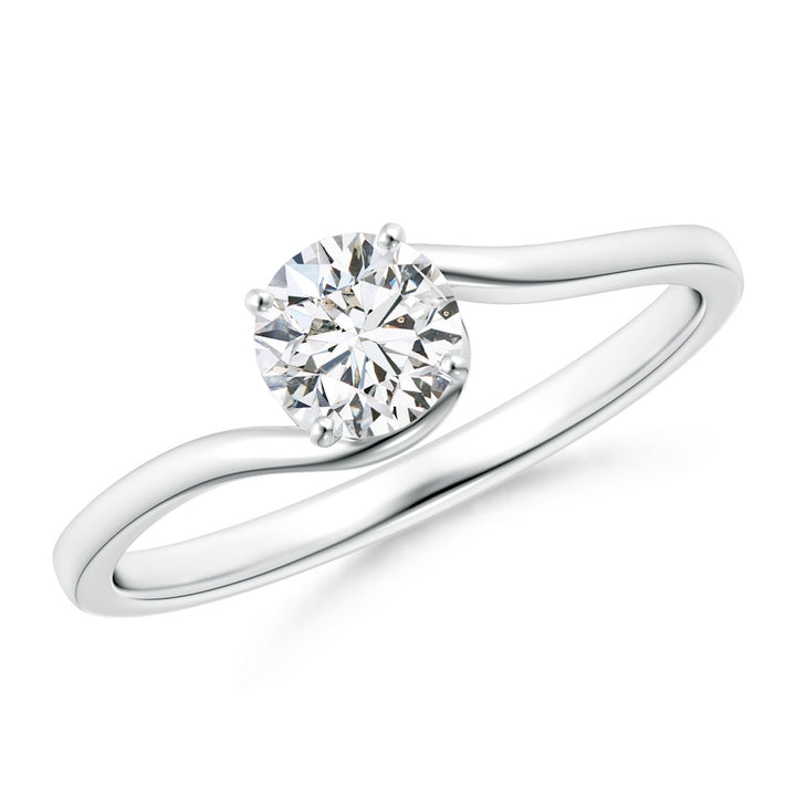 The Classic Solitaire Round Diamond Bypass Engagement Ring by Angara is a captivating design that balances brilliance and grace. The round brilliant diamond is beautifully prong set between the curves of a gleaming 14k white gold bypass shank, making this ring a timeless choice for symbolizing love and commitment.