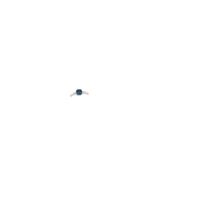 Crafted in 14k white gold. Features 1 cushion lab-grown alexandrite, approximately 6mm, 1.10 ct, lab-grown quality, prong setting. Accompanied by 2 tapered baguette lab-grown diamonds totaling 0.16 ct, F-G VS quality, bar setting.