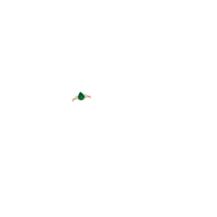 Crafted in 18k yellow gold featuring 1 pear lab-grown emerald (0.95 ct, 8x6mm) and 2 round F-G VS lab-grown diamonds (0.30 ct total). Prong settings. Total carat weight 1.25 cts.