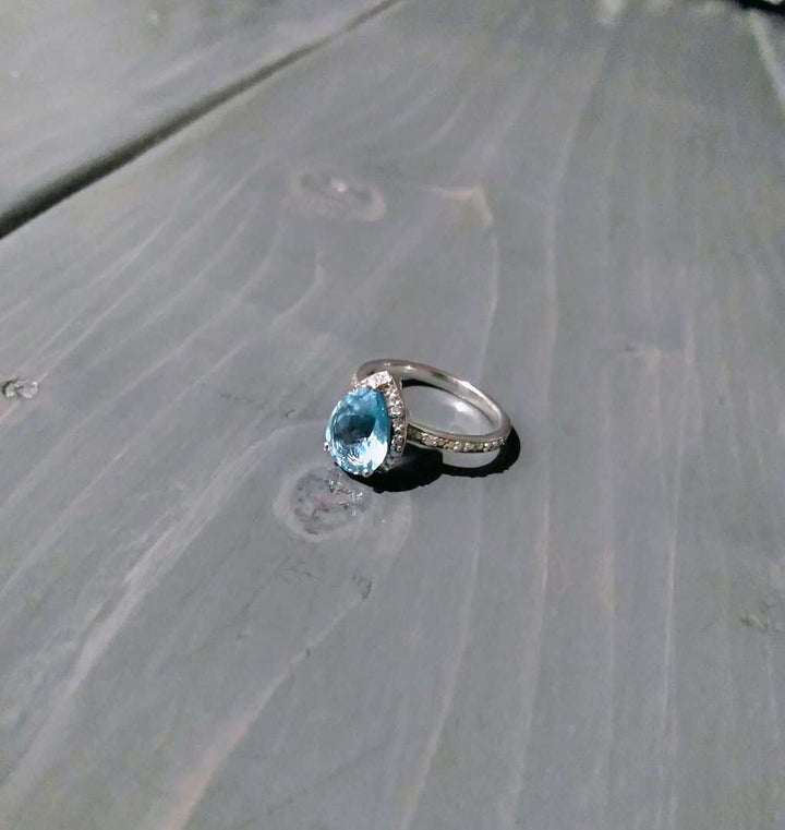Prong-Set Pear-Shaped Opal Ring with Beaded Halo