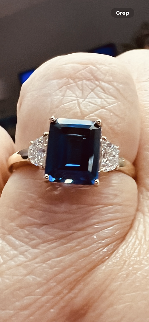 Lab-Grown Emerald-Cut Emerald and Half Moon Lab Diamond Three Stone Ring