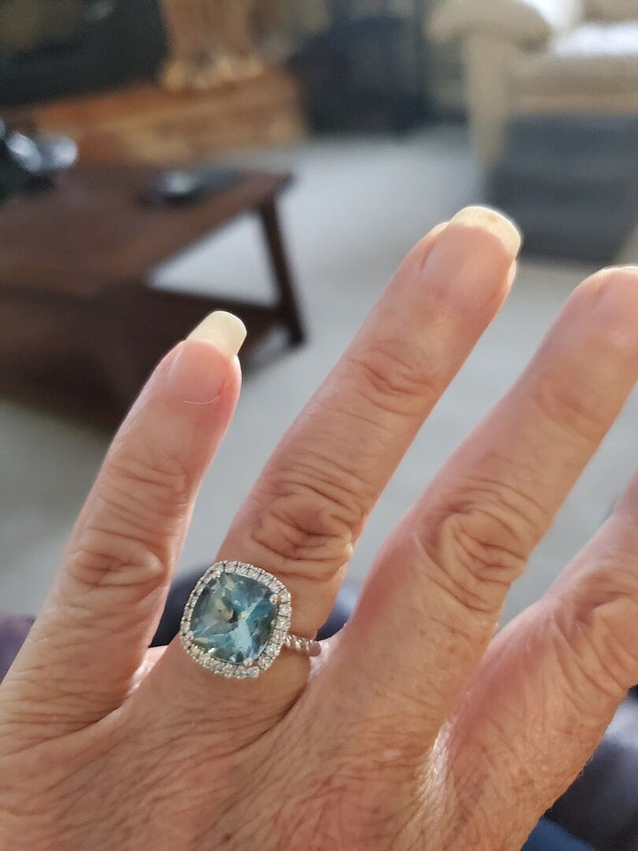 Cushion Aquamarine Twist Shank Halo Cocktail Ring