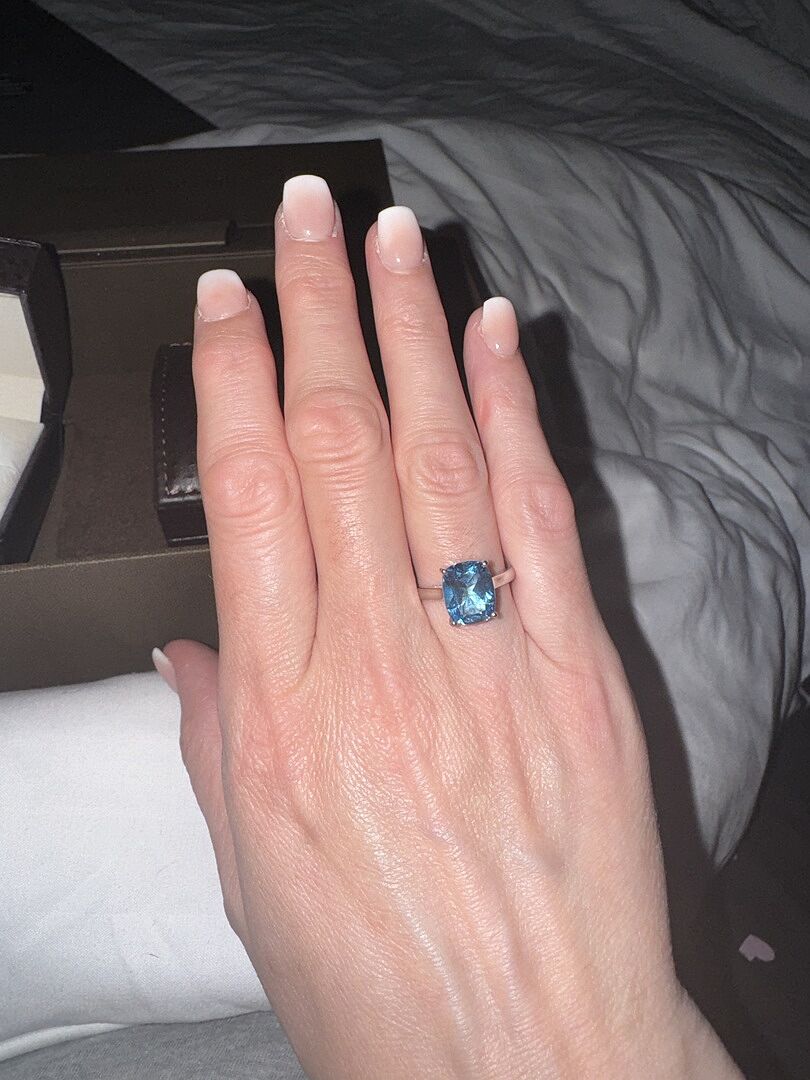 Classic Cushion Swiss Blue Topaz Solitaire Ring with Hidden Accents