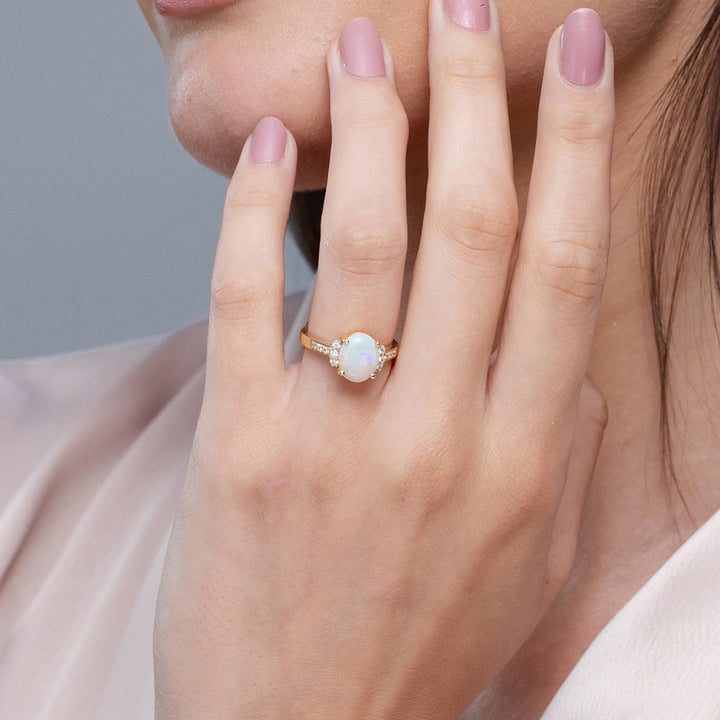Classic Solitaire Oval Opal and Diamond Collar Ring